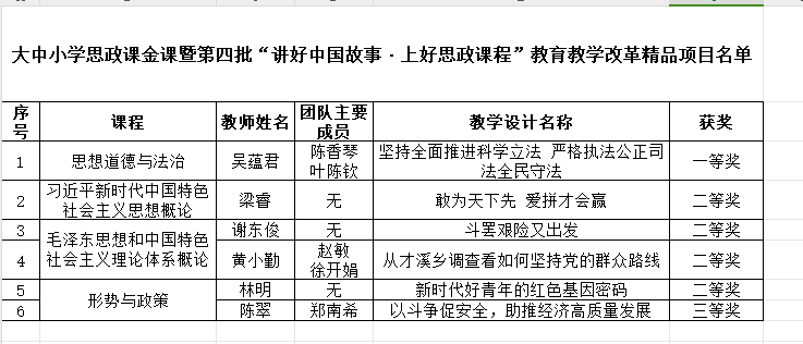 喜讯:近日,beat365获得大中小学思政课金课暨第四批“讲好中国故事·上好思政课程”教育教学改革精品项目一等奖一项,二等奖四项,三等奖一项。