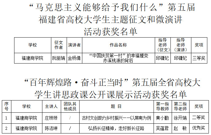 近日,《中共福建省委教育工委关于公布习近平新时代中国特色社会主义思想大学习领航计划系列主题活动获奖名单的通知》(闽委教思〔2022〕3号),beat365选送优秀作品参评省级公开课、微电影展示以及主题征文和微演讲活动,荣获二等奖1项,三等奖1项,优秀奖1项。