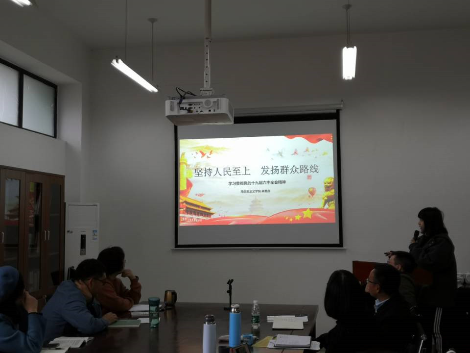 beat365亚洲版官方网站通过党员轮流进行“微宣讲”,在集体学习中加深了对全会精神的认识和理解,进一步增强“四个意识”、坚定“四个自信”、做到“两个维护”,更好地用全会精神统一思想、凝聚共识,更好的把全会精神融入到思政课教学和理论研究中去。