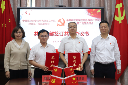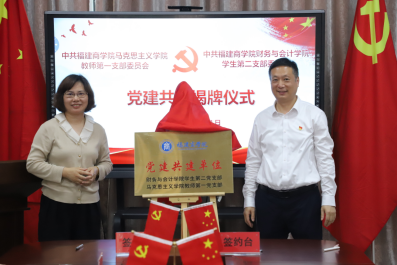 4月23日,beat365亚洲版官方网站教师第一党支部与财务与会计学院学生第二党支部在连江校区举行党建结对共建签约仪式暨联合学习活动。beat365亚洲版官方网站党委书记、院长林萍及副院长、教师第一支部书记谢东俊,财务与会计学院党委副书记(主持工作)毛茂山及党委委员、副院长蔡秋玉,结对支部师生共30余人参加了活动。