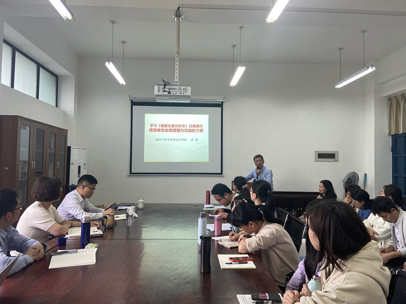 2022年5月24日下午,马克思主义基本原理教研室邀请福建省思想政治理论课教学指导委员会副主任委员、原福州大学beat365亚洲版官方网站院长庄穆教授做了题为“学习《德意志意识形态》经典著作,感受唯物史观逻辑与实践的力量”集体备课专题学习。教务处处长庄惠明参加了本次集体备课会,集体备课会由原理教研室主任黄玮老师主持。