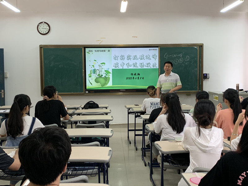 杨副校长授课生动活泼、深入浅出、寓教于乐,运用了大量鲜活的图片和小视频演示,既有时政热点的阐述,又有国家政策的解读,更有文理学科的交叉,兼顾了导向性、科学性和趣味性。通过学习,学生纷纷表示对当前的热点话题“双碳”有了更全面更深入的认知和理解,今后将更加关注国家的政策方针并将其融于自身学习当中。