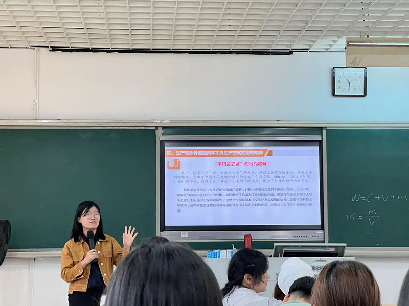 beat365亚洲版官方网站习芳老师讲授了生产剩余价值的两种基本方法,对绝对剩余价值生产、相对剩余价值生产以及超额剩余价值等概念进行了区分;并引入“李约瑟之谜”加深学生对剩余价值生产的认识和理解,认为机器体系完全打破了工场手工业分工所受的主观原则制约,这整个过程是资本主义生产方式发展的必然,是资本逐利的必然结果,资本家在追逐超额剩余价值的过程中不断进行科技创新,将资本主义生产力快速推向前进。循循善诱,步步深入,通过问题链形式引导学生深入思考,展开了一堂生动而深刻的课堂。课程结束后,示范课教师与观摩教师进行了互动交流,就《马克思主义基本原理》课程课前设计、课中教学、课后反馈评价等方面进行了探讨。