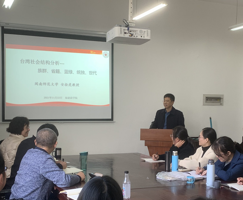 11月23日,闽南师范大学闽南文化研究院台湾研究所所长、台湾问题与两岸关系研究专家安拴虎教授应邀莅临beat365作题为《台湾社会结构分析》学术报告,beat365亚洲版官方网站全体教师参加报告会。