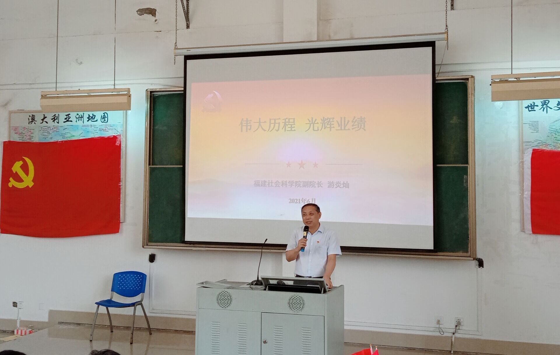 游炎灿副院长从“中国革命呼唤中国共产党”“中国共产党领导人民实现民族独立和人民解放”“中国共产党为实现国家繁荣富强和人民共同富裕而努力奋斗”“中国共产党100年光辉历程的重要启示”等四个方面重温了我们党的百年辉煌历程,系统讲述了我们党是如何开辟出中国革命新道路、如何成为抗日战争的中流砥柱以及在建设社会主义道路上的艰辛探索,深刻论述了必须坚持把马克思主义基本原理同中国实际相结合、必须始终保持党同人民群众的血肉联系、必须加强党的领导的重要性和必要性。