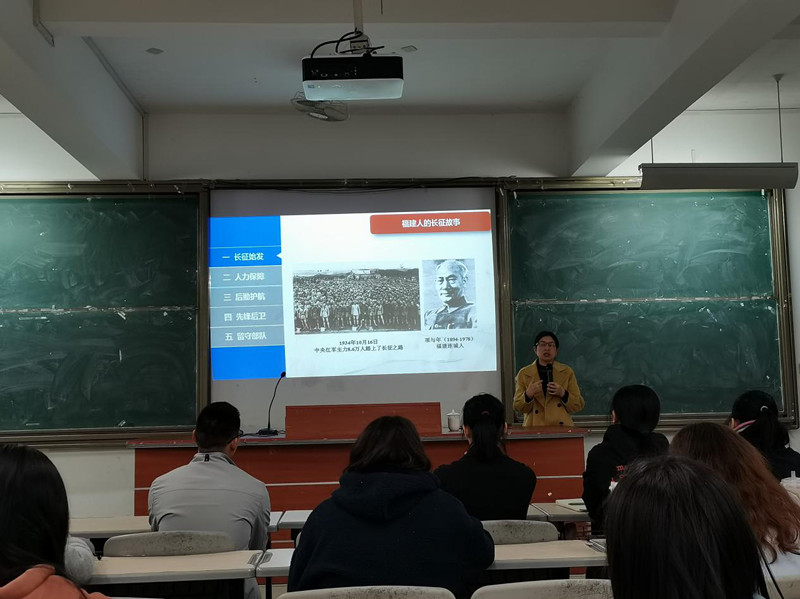 李宝艳教授以马克思主义中国化发展历程为切入点,从历史逻辑系统阐述了中国共产党人对于初心使命的坚守。李教授认为中国先进知识分子几经比对之后最终选择了马克思主义作为救亡图存的指导思想,为党的成立发展作了思想准备。在讲授中,李宝艳教授利用丰富史料重点分析了1927——1949这段时期中国共产党、中国人民军队的成长历程,中国共产党在土地革命、抗日战争、解放战争时期历经磨难,在实践中总结经验教训,带领中国人民浴血奋战,取得了辉煌成就,彰显了中国共产党人的巨大政治智慧、战略智慧、组织智慧与经济智慧,充分论证了中国共产党为什么能。李宝艳教授指出,在福建这片殷红的沃土上,福建人民在人力保障、后勤护航方面为中国革命事业作出了巨大贡献,特别是闽西子弟在长征时期付出了巨大牺牲,在我国革命史上留下了浓墨重彩的一笔。