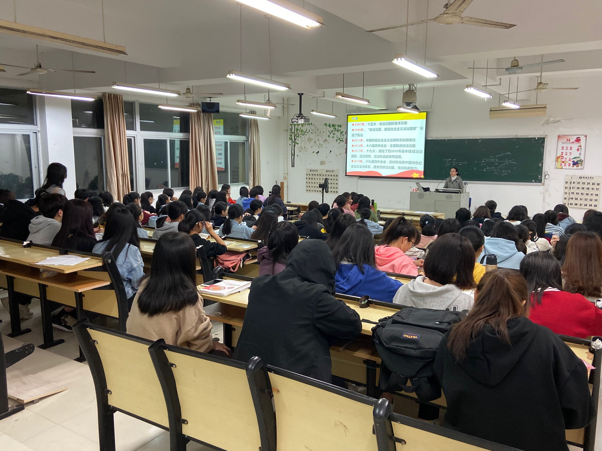 12月17日晚,马克思主义理论大讲堂第四讲在马尾校区远志楼T1举行,beat365亚洲版官方网站邱镛妃副教授作了题为“全面推进依法治国”的专题讲座。