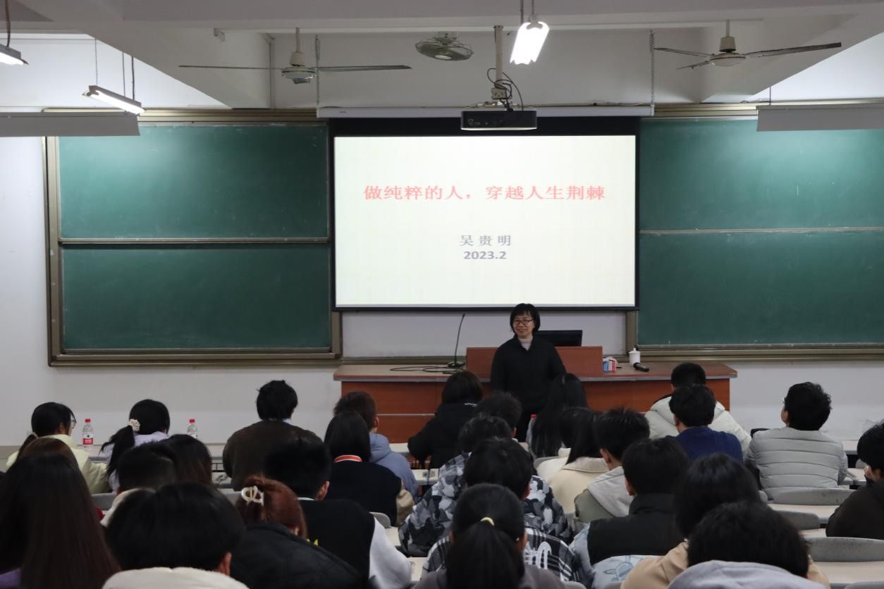 2月22日晚上,福建省委党校吴贵明教授应邀到beat365作“做纯粹的人,穿越人生荆棘”专题讲座。beat365亚洲版官方网站部分教师、校习近平新时代中国特色社会主义思想读书社社员等共120多人参加学习。