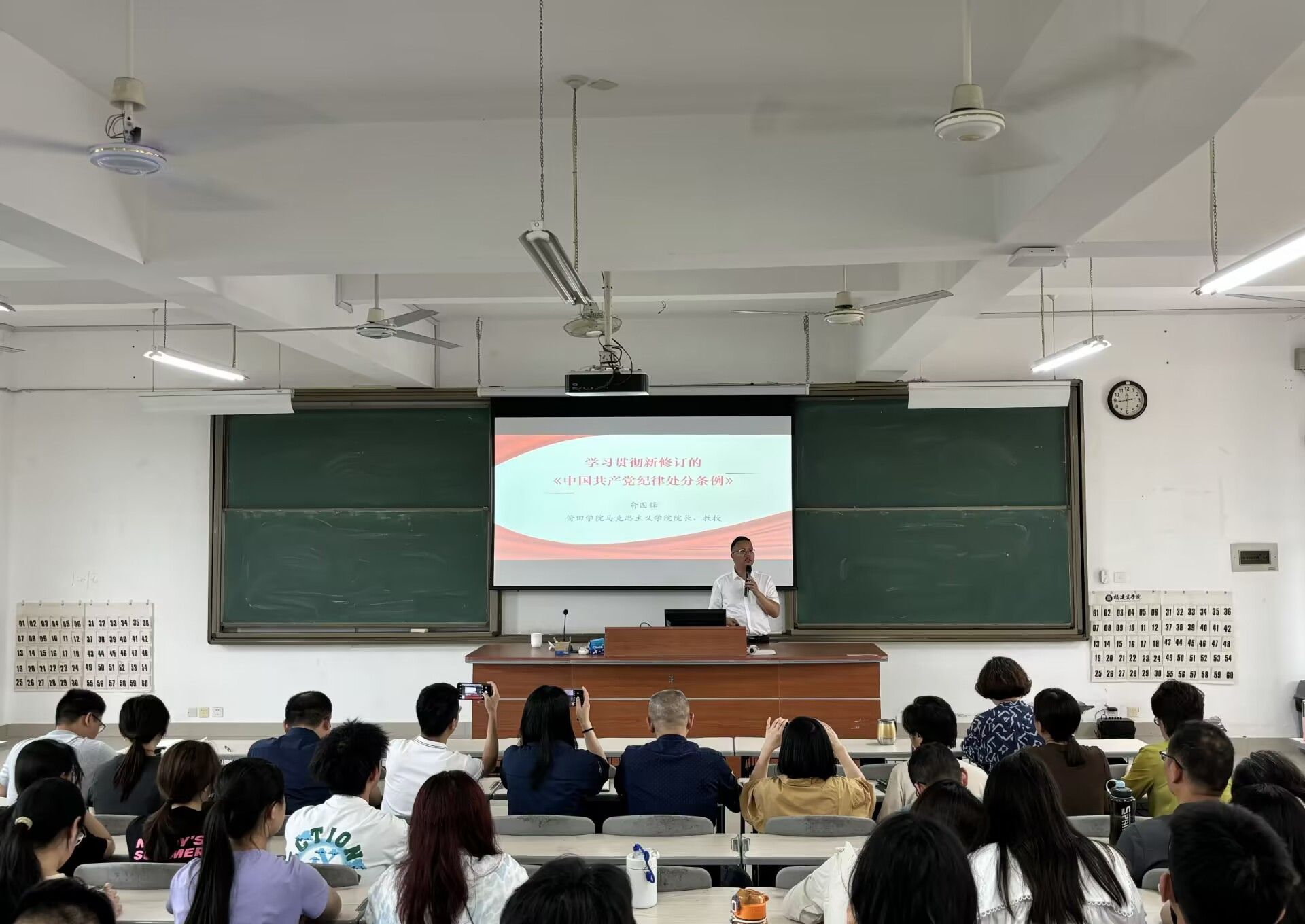 为深入学习贯彻修订后的《中国共产党纪律处分条例》,5月7日下午,beat365亚洲版官方网站、旅游与休闲管理学院联合举办了“学习贯彻新修订的《中国共产党纪律处分条例》(以下简称《条例》)”专题讲座,讲座由莆田学院马院院长俞国锋教授做报告。beat365亚洲版官方网站、旅游与休闲管理学院全体党员教师、部分学生党员及习近平新时代中国特色社会主义思想读书社社员共100多人参加本次讲座。