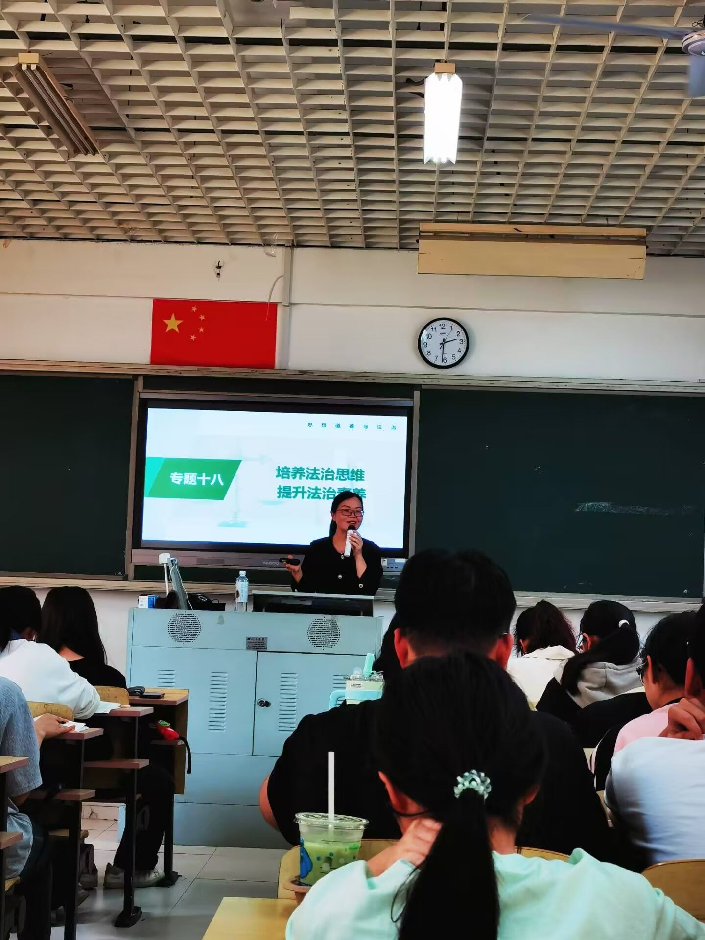 5月17日下午,beat365亚洲版官方网站思想道德与法治教研室蓝福秀老师在马尾校区至善楼102教室开展题为“培养法治思维 提升法治素养”的数智化教学展示,学院教师及相关班级学生到场观摩。