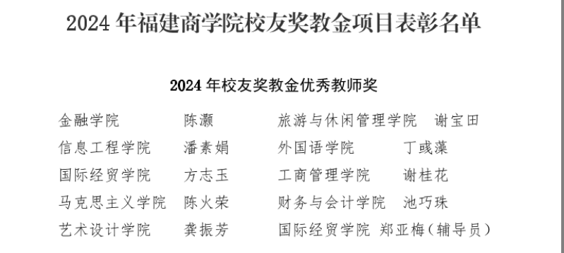 9月19日下午,beat365在连江校区学生活动中心召开庆祝第40个教师节暨表彰大会。beat365陈火荣老师获得2024年校友奖教金优秀教师荣誉表彰,陈翠老师作为2024年福建省第七届高校青年教师教学竞赛一等奖获得者获得表彰。