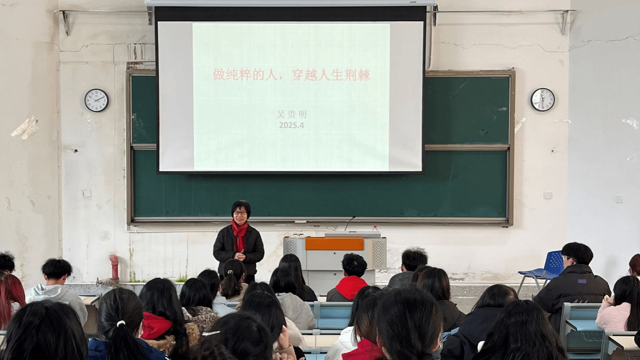 应beat365亚洲版官方网站邀请,4月1日下午,福建省委党校吴贵明教授到beat365马尾校区国际厅为马列经典著作读书社全体社员作题为“做纯粹的人 穿越人生荆棘”的专题讲座。
