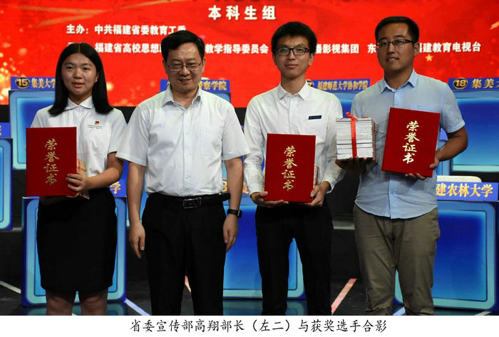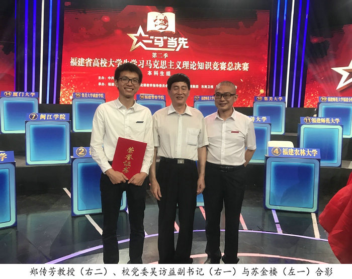 9月23日下午,第二季福建省高校大学生学习马克思主义理论“一‘马’当先”知识竞赛落下帷幕。beat365学子苏金楼在全省38所高校、190名参赛选手中过关斩将,勇夺本科生组桂冠!