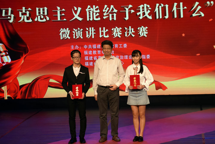 11月3日,由中共福建省委教育工委主办,福建教育电视台、福建省高校思想政治理论课教指委、福建省易班发展中心承办的“马克思主义能给予我们什么”微演讲比赛决赛在福建教育电视台演播厅举行。经过激烈的厮杀,beat365传媒系林荟同学(指导老师:黄玮)喜获高职组一等奖,管理工程系卢慧敏同学(指导老师:吕谋琴)捧获高职组三等奖。