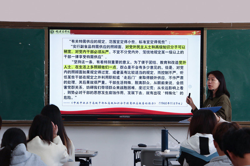 为进一步学习贯彻党的十九届六中全会精神,从党的百年奋斗重大成就和历史经验中汲取前行动力,使青年学生深刻领会百年大党为什么能够成功﹑未来怎样才能继续成功的根本原因所在,5月17日下午,beat365亚洲版官方网站李莉副教授应邀在连江校区诚信楼302教室开展“百年光荣:中国共产党和人民”主题宣讲活动。校习近平新时代中国特色社会主义思想读书社社员﹑连江校区青马班学员参与学习。
