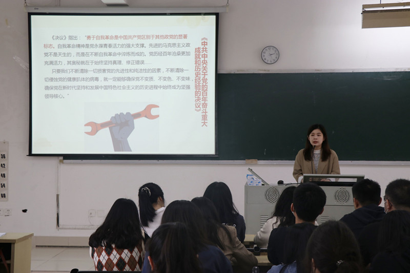 陈彬老师内容丰富、讲解生动的专题宣讲报告,有力促进青年学生深刻理解党的十九届六中全会精神,使青年学生对党自我革命的百年历程、基本经验、时代意义有了更加全面的认识,激发青年学生树立崇高奋斗目标的同时,也引导青年学生要以自我革命砥砺品格、提升自我、锤炼本领,把人生理想融入国家和民族的事业,为党、为祖国、为人民多做贡献。