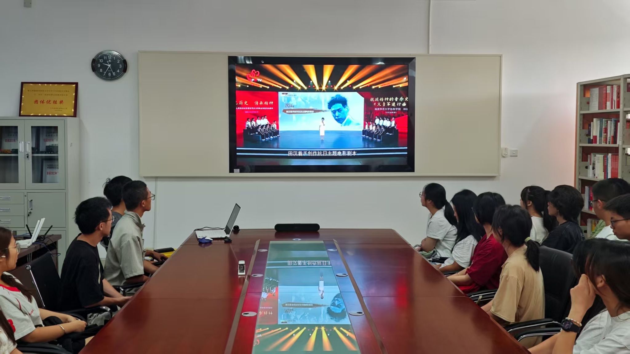 活动中,社员们认真聆听节目中的历史讲述与精神解读,共同回顾中国共产党团结带领人民不懈奋斗的壮阔历程,深刻感悟革命先辈的崇高品格与红色基因的时代内涵。主讲教师们或娓娓道来,或慷慨激昂,与学子们互动研讨,通过珍贵影像资料、访谈影像等形式,生动展现了中国共产党人的精神谱系,引发社员们的强烈共鸣。节目后,众人共同观看抗战主题电影《巧奔妙逃》,在优秀影视作品中进一步体悟全民抗战的智慧与坚韧,深化了历史认知。