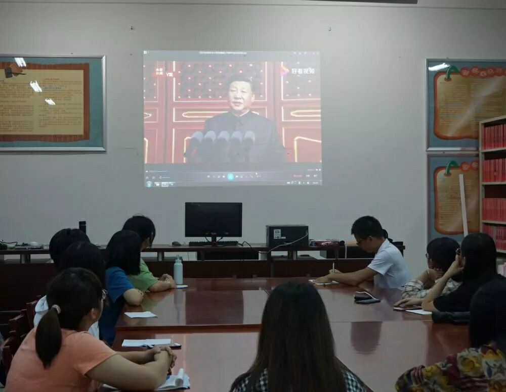 首先,全体人员一同观看1949年开国大典庆典活动、几十年来中国与其他国家GDP的变化情况以及总书记在庆祝中华人民共和国成立70周年大会上的讲话等相关视频。随后,全体社员交流学习心得。副社长雷和林同学结合几十年来我国GDP的增长情况以及国内生活的变化谈了自己的感受;王馨怡同学从群众参与度高、阅兵水平高和“泪点低”“两高一低”的角度点赞此次国庆庆典活动;林丹晨同学认为庆典上放飞的“会回家”的鸽子、可降解的气球正是创新、绿色等新发展理念的生动实践。其它社员结合自身学习生活对国庆庆典以及新中国成立70年来的光辉岁月交流了感想。其中,“雄壮、自豪、震撼”等等词语在活动中高频出现,说明同学们对这次的国庆庆典深有感触,也进一步激发大家的爱国热情,更有同学表达了“此生无悔入华夏,来世还做中国人”的豪情壮志。