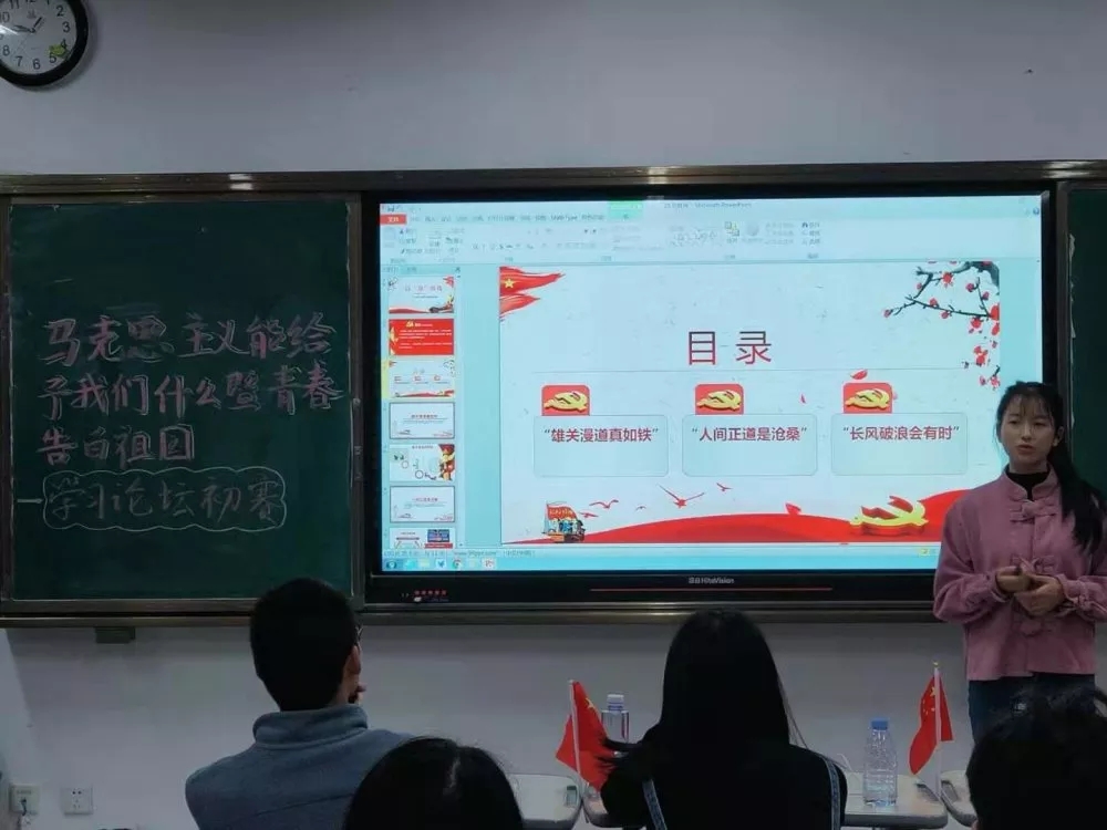为进一步深入学习马克思主义,特别是习近平新时代中国特色社会主义思想,宣传新中国成立70年来取得的巨大成就。2019年11月26日晚习近平新时代中国特色社会主义思想读书社在连江校区诚信楼509开展了以“马克思主义能给予我们什么暨青春告白祖国”为主题的学习论坛初赛。财务与会计学院刘佳老师,beat365亚洲版官方网站赵敏老师、叶陈钦老师以及读书社陈舒睿、雷和林两位同学担任本次活动评委。